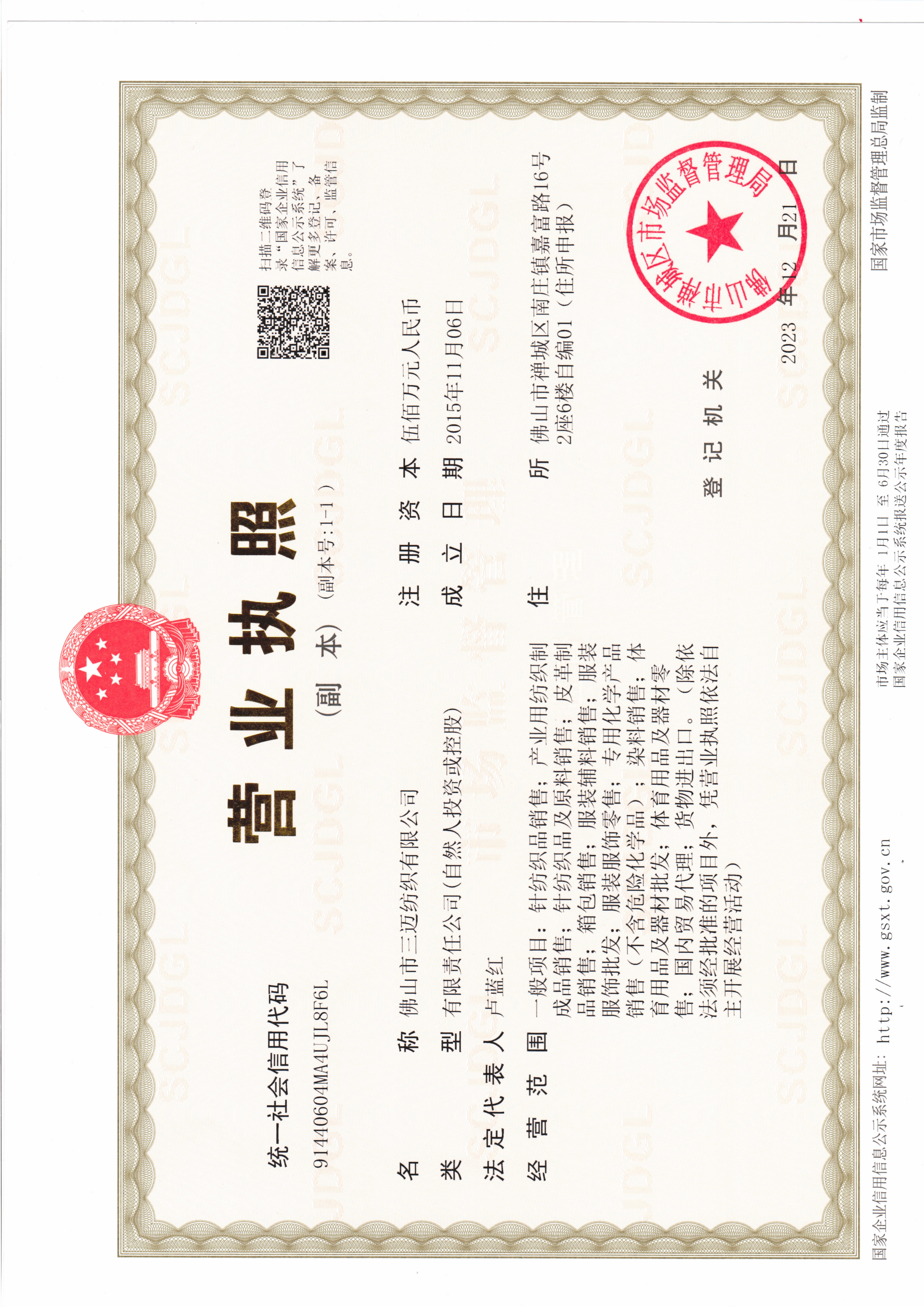 ../ SC-GRS-Certificate 4.0-Foshan SumMax Textile Co..> 30-Oct-2025 03:05 391631 一般纳税人证书_1761792203659.png 30-Oct-2025 02:43 81064 三迈厂房租赁合同_1761792910784.pdf 30-Oct-2025 02:55 1808750 三迈营业执照副本_1761793165179.jpg 30-Oct-2025 02:59 13397213 企业征信_1761804511240.pdf 30-Oct-2025 06:08 173587 无欠税证明2025-10-30_1761805728393.pdf 30-Oct-2025 06:28 80974